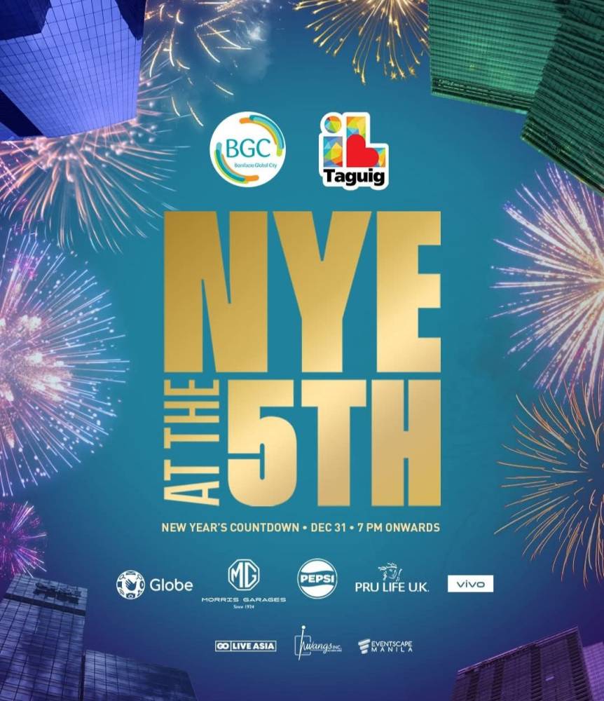 BGC’s 5th Avenue will come alive at 7 p.m. for “NYE at the 5th,” featuring Parokya ni Edgar, Apl.de.ap, KZ Tandingan, TJ Monterde, Dionela, and more, with SB19 closing the night after returning from their world tour. Immersive light choreography, LED satellite screens, and a dual-zone fireworks display will highlight the celebration.