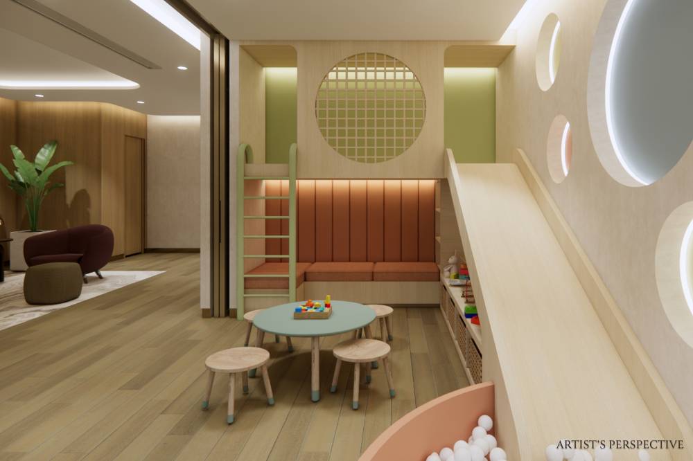 Traditional leisure facilities like the pool and gym are complemented by exclusive upper-floor family lounges and play areas.