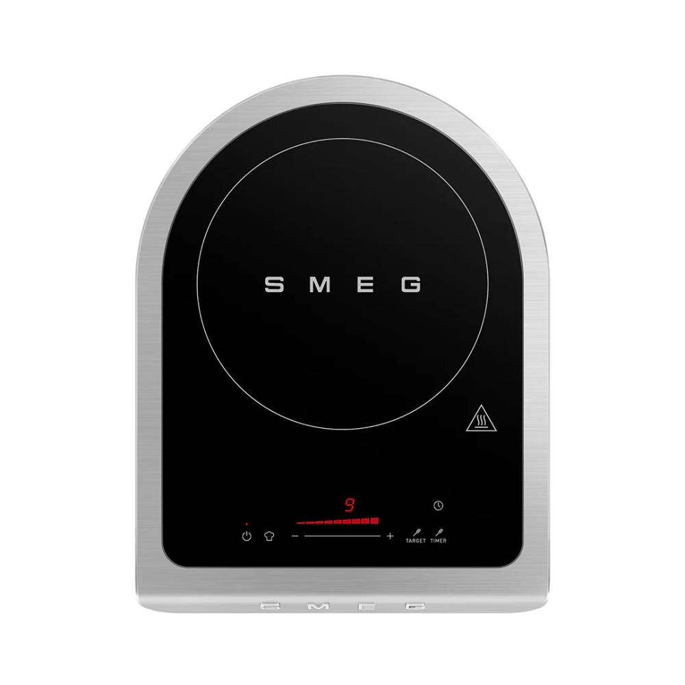 Induction cooktops are more efficient than gas cooktops since the cookware is directly heated, resulting in faster heating time. Smeg offers five-, four-, and two-burner cooktops, including a single portable version.