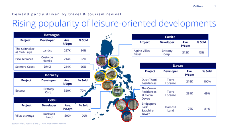 Colliers believes that developers should cash in on the thriving demand for resort or leisure-oriented properties outside Metro Manila.