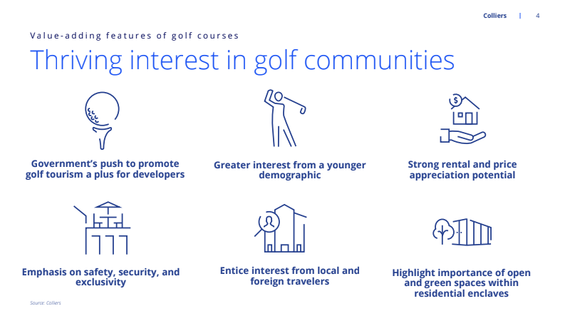 Colliers also sees the revival of demand for golf communities within and outside Metro Manila. Among the developers that launched new golf communities include Vista Land and Megaworld. Sta. Lucia meanwhile remains one of the biggest developers of golf communities across the country.