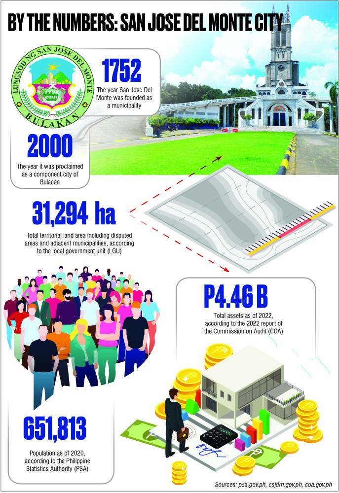 SJDM, the largest city in Bulacan in terms of land area and population, achieved its cityhood on Sept. 10, 2000 by virtue of Republic Act No. 8797. At present, it is politically subdivided into 62 barangays and has a population of 651,813 as of the 2020 Census of the Philippine Statistics Authority.