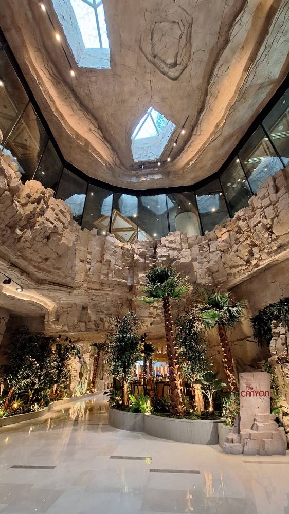 Within that larger composition, The Canyon brings the same visual language down to a more intimate human scale. The venue creates a truly enchanting atmosphere with its beautiful stone enclave concept, reminiscent of a majestic natural interior.