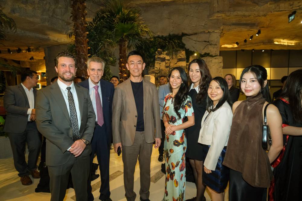 Hann Resorts chairman and CEO Daesik Han and Casino Operations SVP Dennis Andreaci with the Aristocrat Team