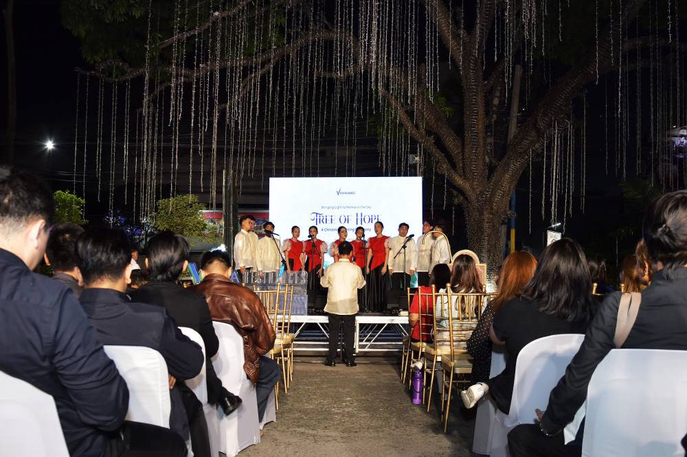 Performances from the award-winning Quezon City Performing Arts Foundation Inc. Concert Chorus followed, whose rendition of Christmas classics enlivened the evening. Guests were then invited to photo opportunities in front of the lighted Tree of Hope before returning to refreshments, including traditional puto bumbong, bibingka, and salabat.