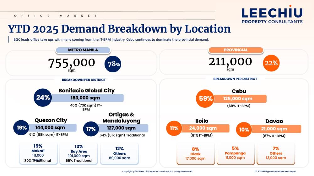 Our research shows that demand from IT-BPM firms remains the single biggest driver of office leasing across the country. Cebu, Clark, and Davao continue to see strong take-up from companies expanding outside Metro Manila, drawn by the deep talent pool, improving infrastructure, and availability of Grade A office spaces designed for outsourcing operations.