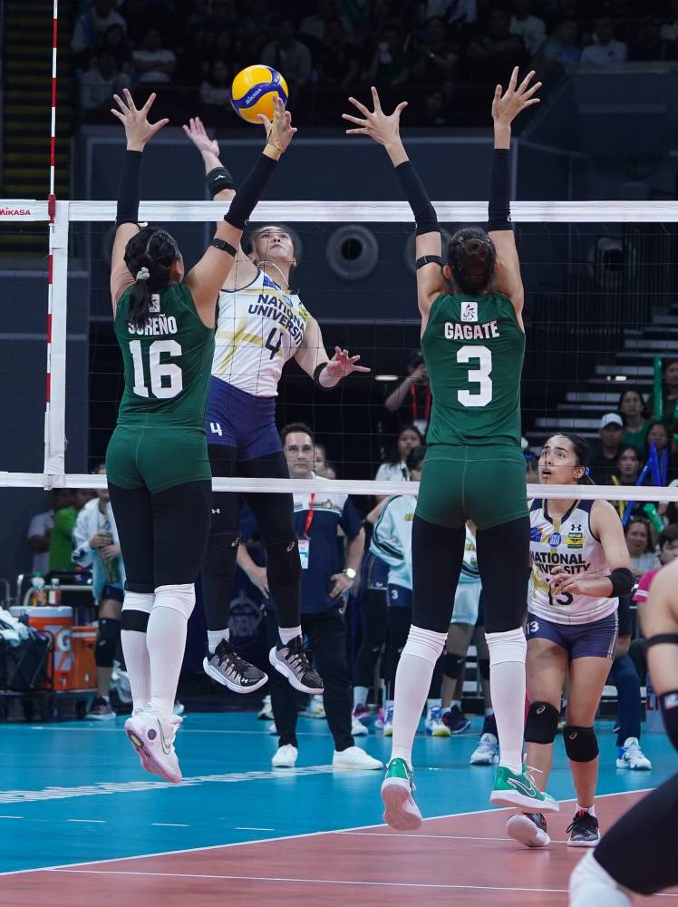 Belen was an all-around sight to behold in what could be the biggest game for the Bulldogs this season, finishing with 14 attack points while adding 14 excellent receptions. Alyssa Solomon completed the three-sided battering ram for NU after finishing with 13 points from 12 attacks and a block.