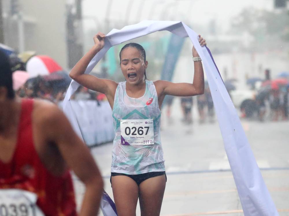 “I really didn’t expect this,” Torregosa said in Filipino, the tears streaming down her cheeks barely recognizable because of the continuous downpour. “There were members of the Philippine national team in the race, and I’m not part of that team.